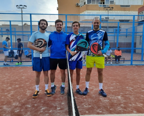 Por la tarde tocaba cambiar la raqueta de tenis playa por la de padel y ponerse los tenis, María Martinez, haciendo pareja con Maria Mizzi (antigua alumna de la escuela de padel y ahora profe de las peques), se hacían con las seminales ante Maria Lopez y Sonia Melon claramente por 6/1 6/2, al contrario que María para Nicolás, que formaba dupla junto a su entrenador Francisco Javaloy, las semifinales fueron durísimas, ante la pareja formada por Antonio Gallego y Armando Moya, que no se lo pusieron nada fácil, una semifinal emocionante donde nadie se ha querido levantar de la grada hasta que no acabó el Tie Breack del tercer set, el resultado final del partido fue 6/4 2/6 7/6 para Nicolás y Paco.