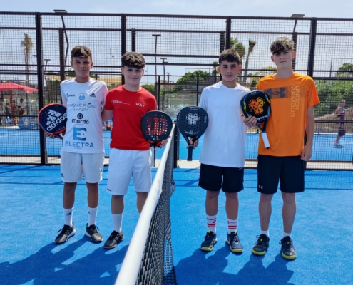 El cruce más complicado lo tuvieron nuestros pequeños, Pablo Moya y Rayan Lamrani, que cayeron con contundencia (0/6-0/6) ante los cabezas de serie número 1, la pareja Navarra compuesta por Anselmo Guerrero y Unax Arranz, pero que seguro que les servirá de aprendizaje ya que era su debut en una prueba a nivel nacional.