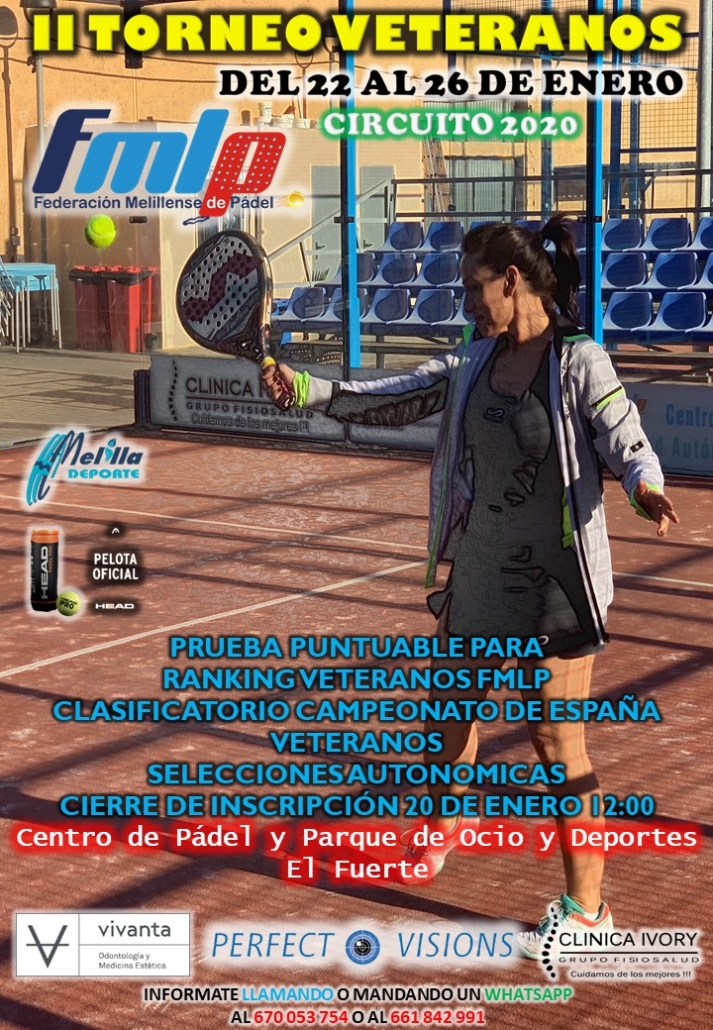 Melilla – 30 de Enero 2020 PADEL 2020 – II TORNEO CIRCUITO DE VETERANOS FMLP Las parejas formadas por Mayca Gil – Pili Gómez y A...